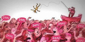 "El león falleció, ¡triste desgracia… / Y van, con la más pura democracia, a nombrar nuevo rey, los animales. / Las propagandas hubo electorales, Prometieron