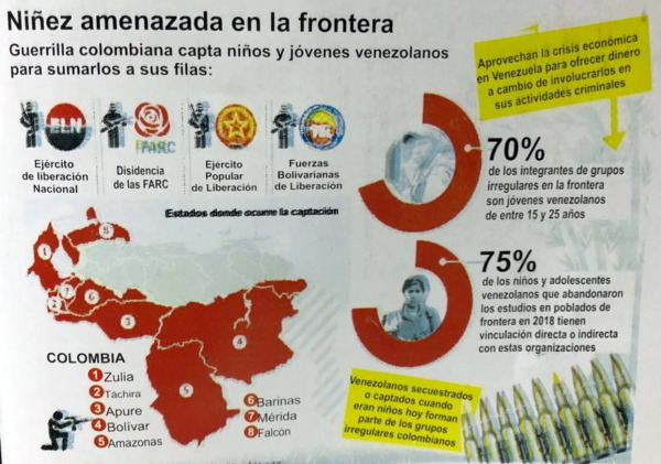 Fundaredes denunció que 15.000 venezolanos han sido reclutados por la guerrilla colombiana. En su informe anual destacan que captan a parte de la diáspora venezolana para incorporarla al narcotráfico, la extorsión y el terrorismo. Muchos son jóvenes y están en edad escolar.